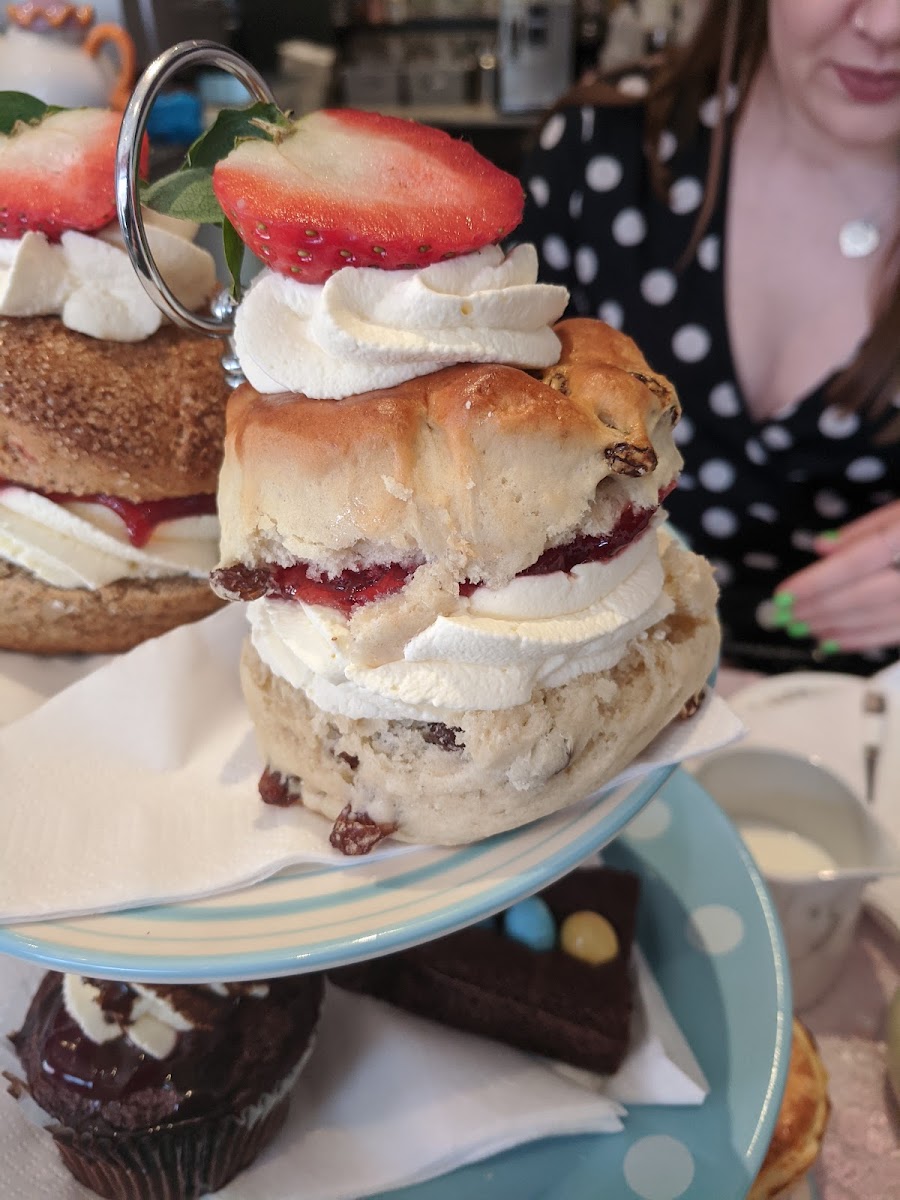 Fantastic, two Afternoon Teas to go for a birthday lunch, absolutely stuffed with lots of leftovers! Cup cakes and brownies to die for, seriously tasty sandwiches, scones with huge dollops of cream and jam and fresh strawberries, cheese scones .... heavenly!